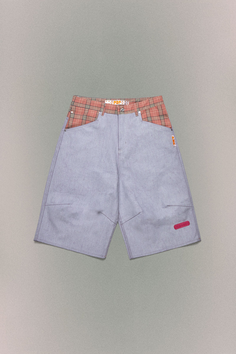 - Bifabric construction: check-pattern fabric on the upper section, paired with a